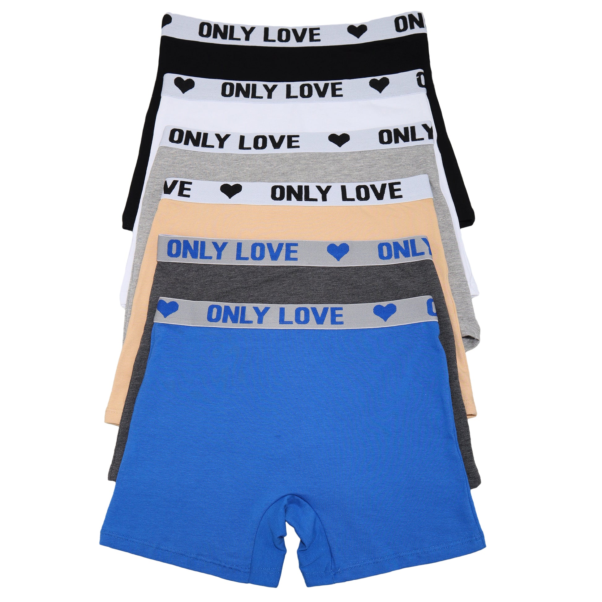 Cotton Bike Short Panties with Only Love Elastic Waistband (6-Pack)