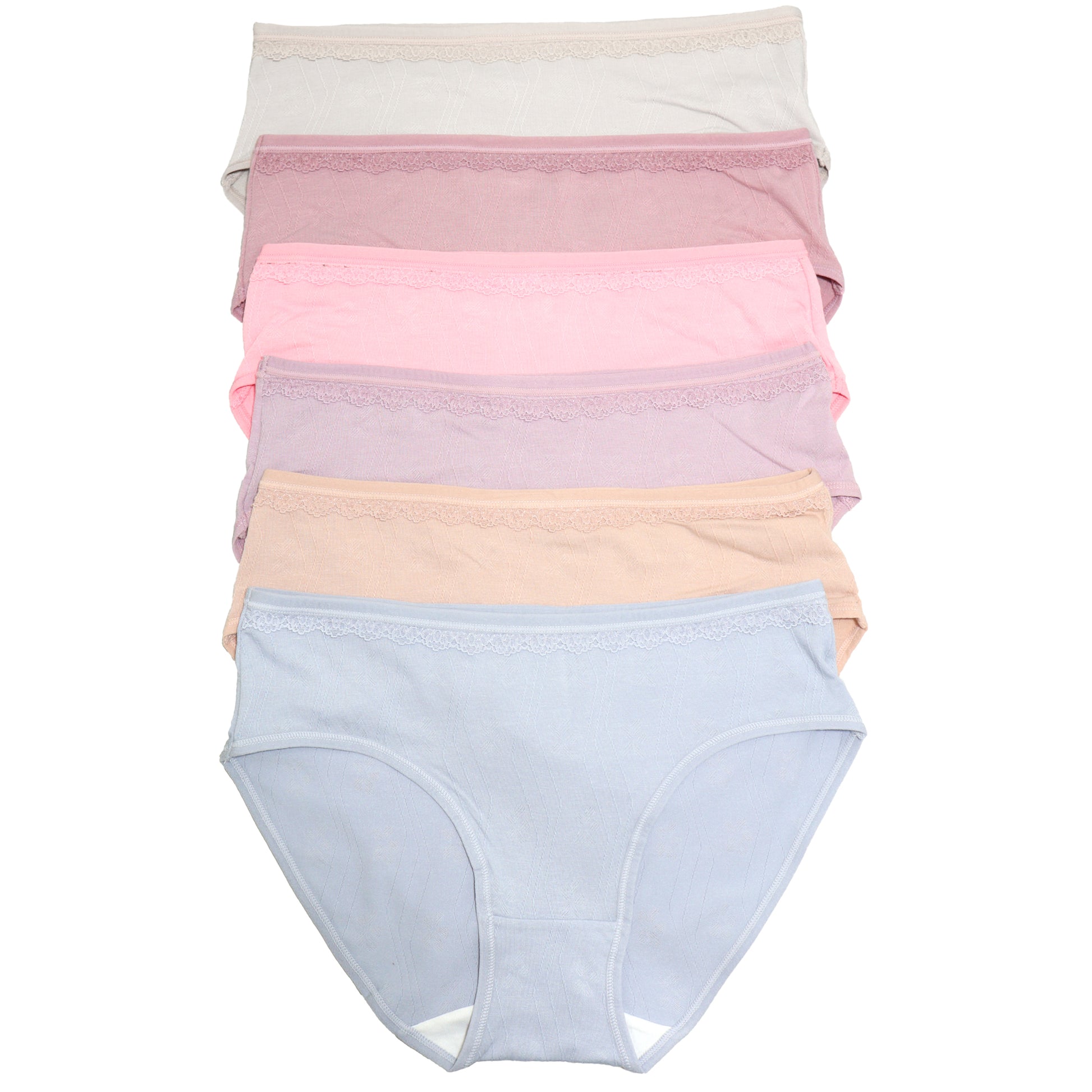 Cotton Bikini Panties with Lace Trimming (6-Pack)