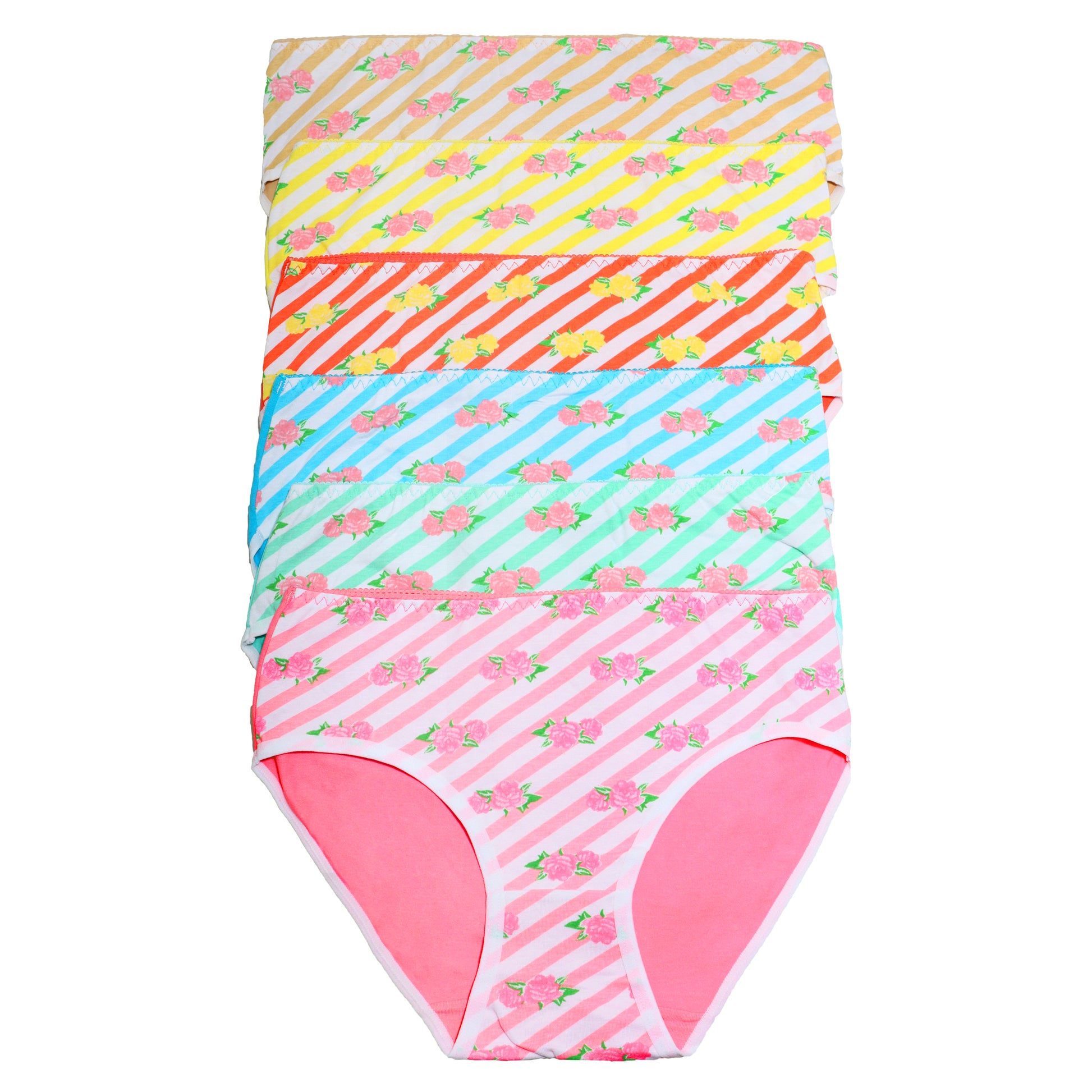 Cotton Bikini Panties with Roses and Stripes Design (6-Pack)