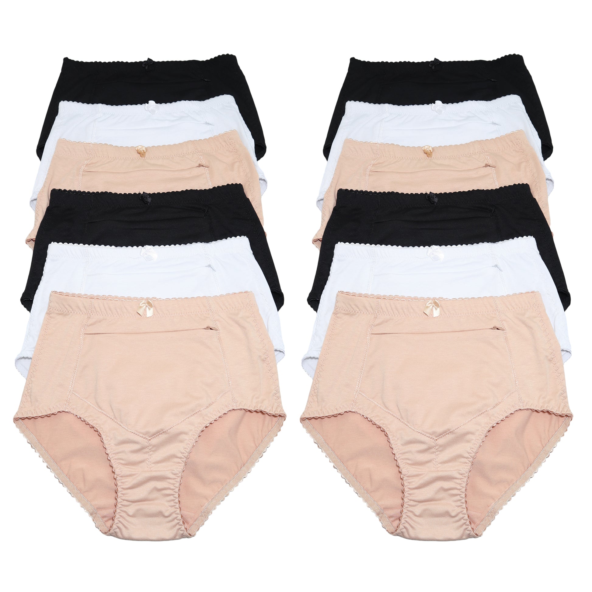 Cotton High Waist Briefs with Zippered Pocket (12-Pack)