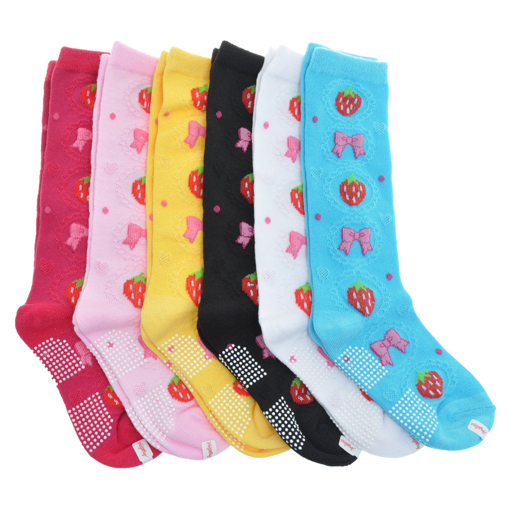 These cute knee-high socks feature a bowtie design to give any boring outfit a pop of color. Pair them with boots, sneakers or mary jane shoes. They are made with a soft, cotton material to provide optimum comfort and durability. Available in assorted colors. Size 1-3 and 4-6 come with a non-skid rubber bottom for safety. Made of 80% Cotton, 8% Nylon, 8% Polyester, 3% Spandex, and 1% Rubber. Machine wash, tumble dry low.