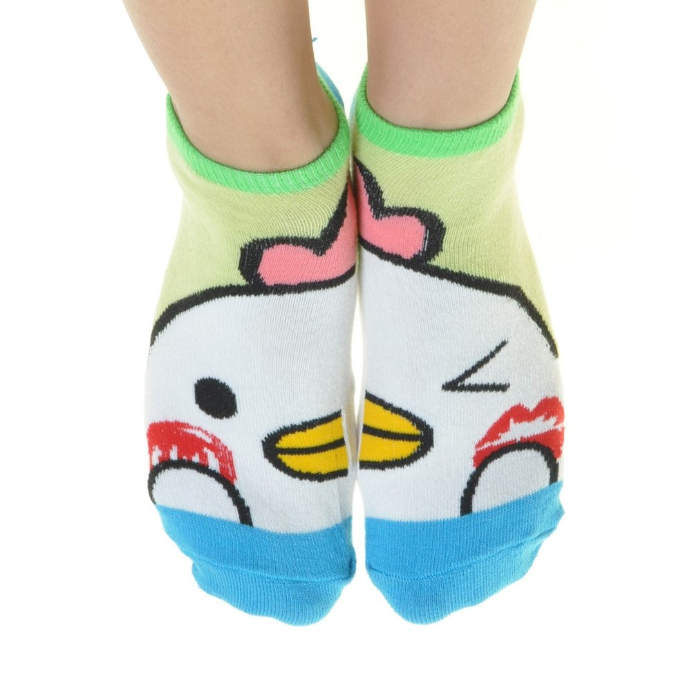 These fun low cut socks feature an assortment of cute designs meant to match together to make a picture. Made with a quick dry fabric to wick away moisture and provide all day comfort. They are low cut for a no-show look in most tennis/walking shoes and sneakers. Available in a variety of colors and designs. Comes in Kids 4-6, Kids 6-8, and womens one size. Made of 80% Polyester and 20% Spandex. Machine wash, tumble dry low.