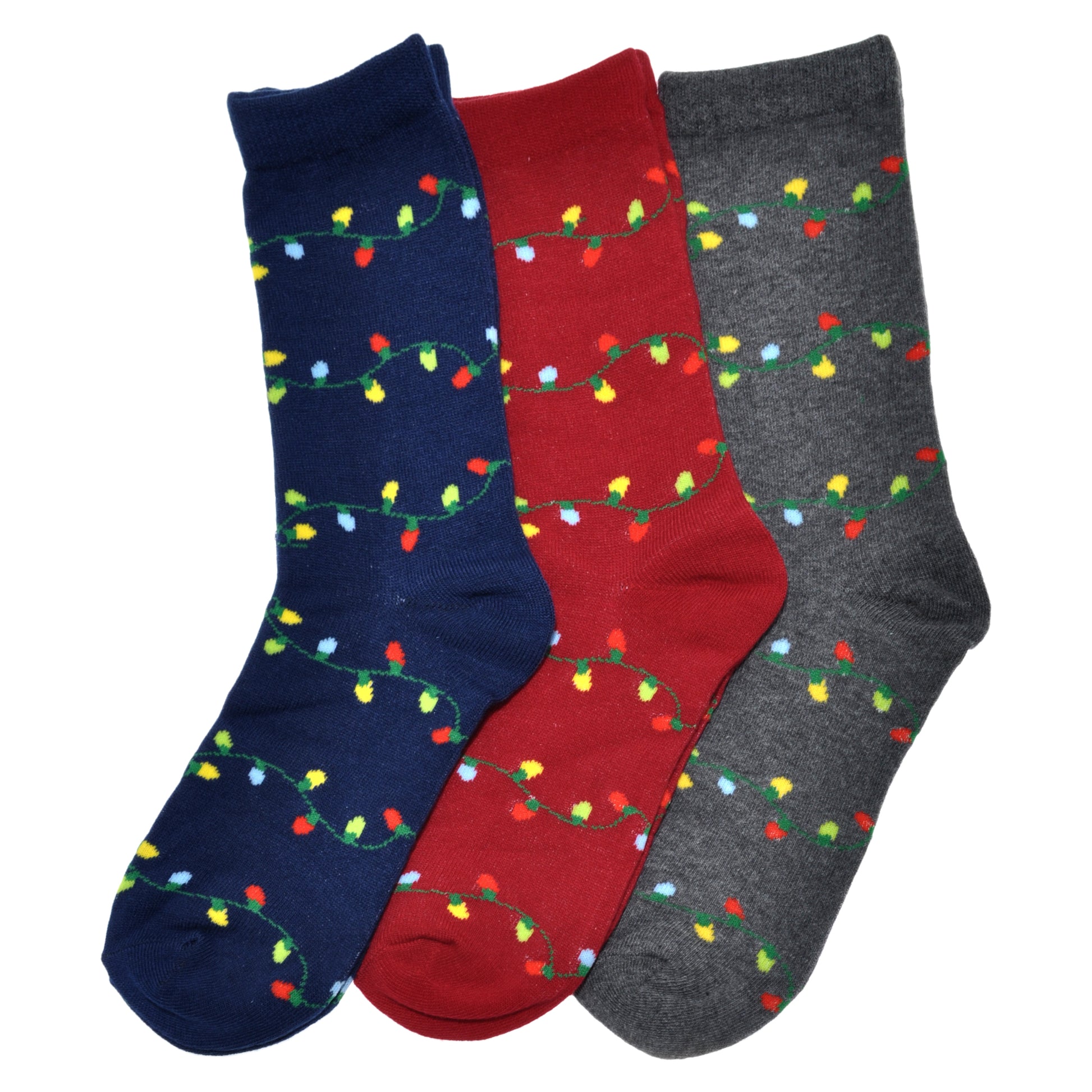 These novelty holiday socks are perfect for giving any boring outfit a fun pop of color and style. Mix-and-match these crew length socks with boots or sneakers. They feature a comfort band at the top to keep them in place as well as a generous heel and toe for optimum comfort. Comes in multiple colors. Available in women's one size fits most and men's one size fits most. Made of 97% Polyester and 3% Spandex. Machine wash, tumble dry low.