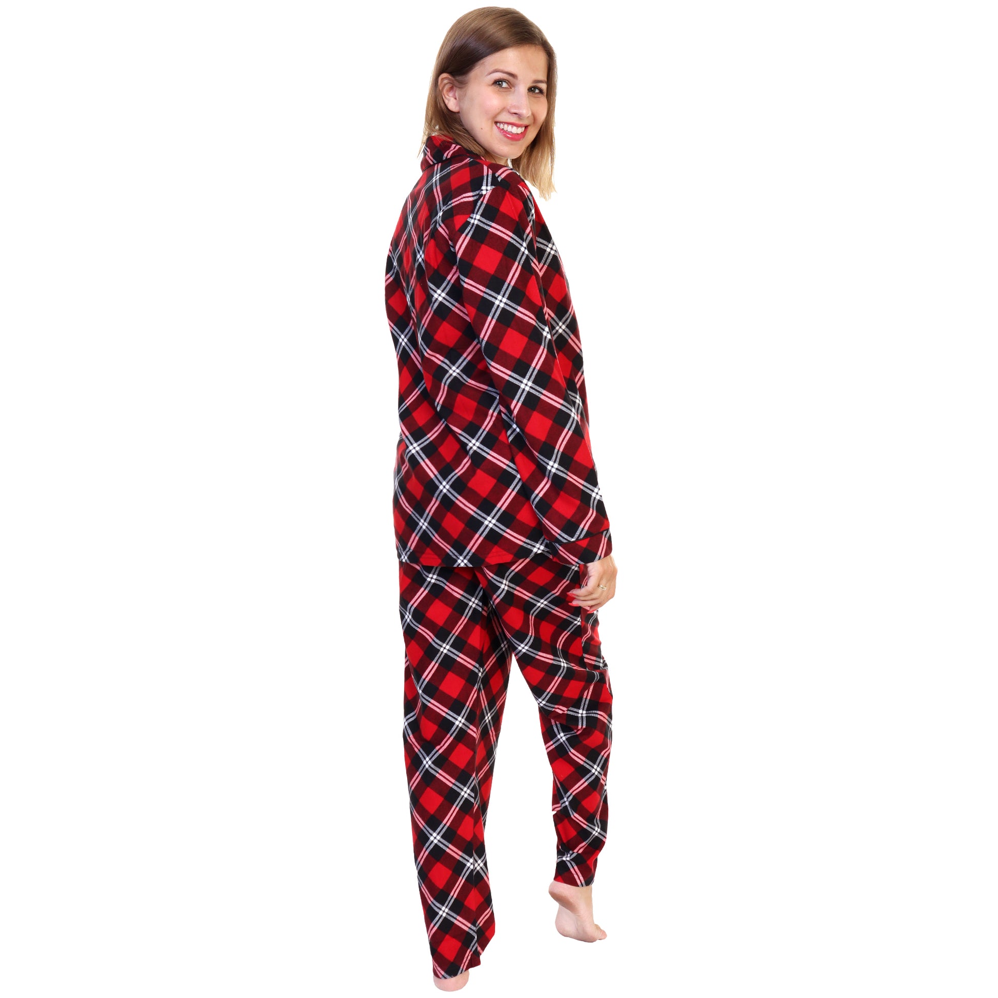 Irresistibly soft and COZY, these flannel pajama sets are designed for warmth, COMFORT, and style. They feature a contrasting satin trim on the jacket as well as TWO POCKETS on the pants. The soft FLANNEL material makes them perfect for SLEEPWEAR or LOUNGE WEAR. Available in a VARIETY of colors and designs. General sizing guide corresponding to US dress size is: Small (0-2), Medium (4-6), Large (8-10), X-Large (12-14), 2X-Large (14-16), 3X-Large (16-18) 4X-Large (18-20). Made of 100% Polyester. Machine wash, tumble dry low.