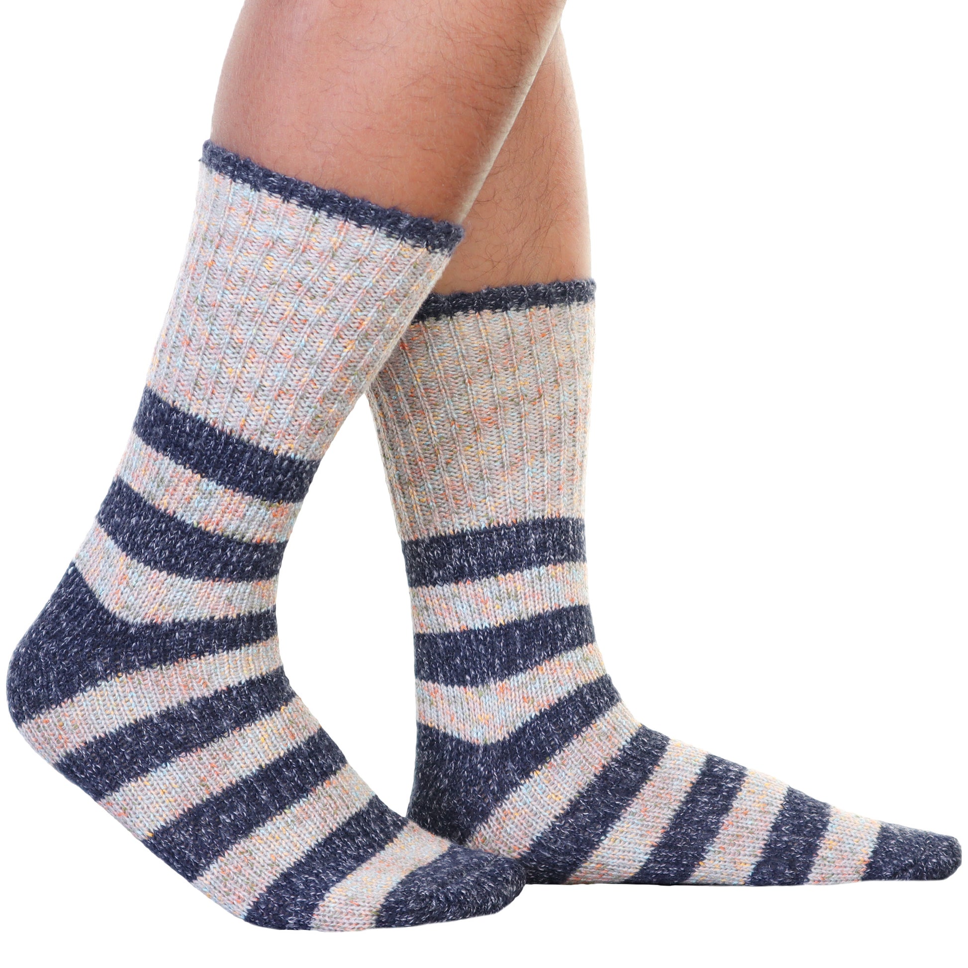 Unisex Cozy Fuzzy Crew Socks with Stripes Pattern (6-Pairs)