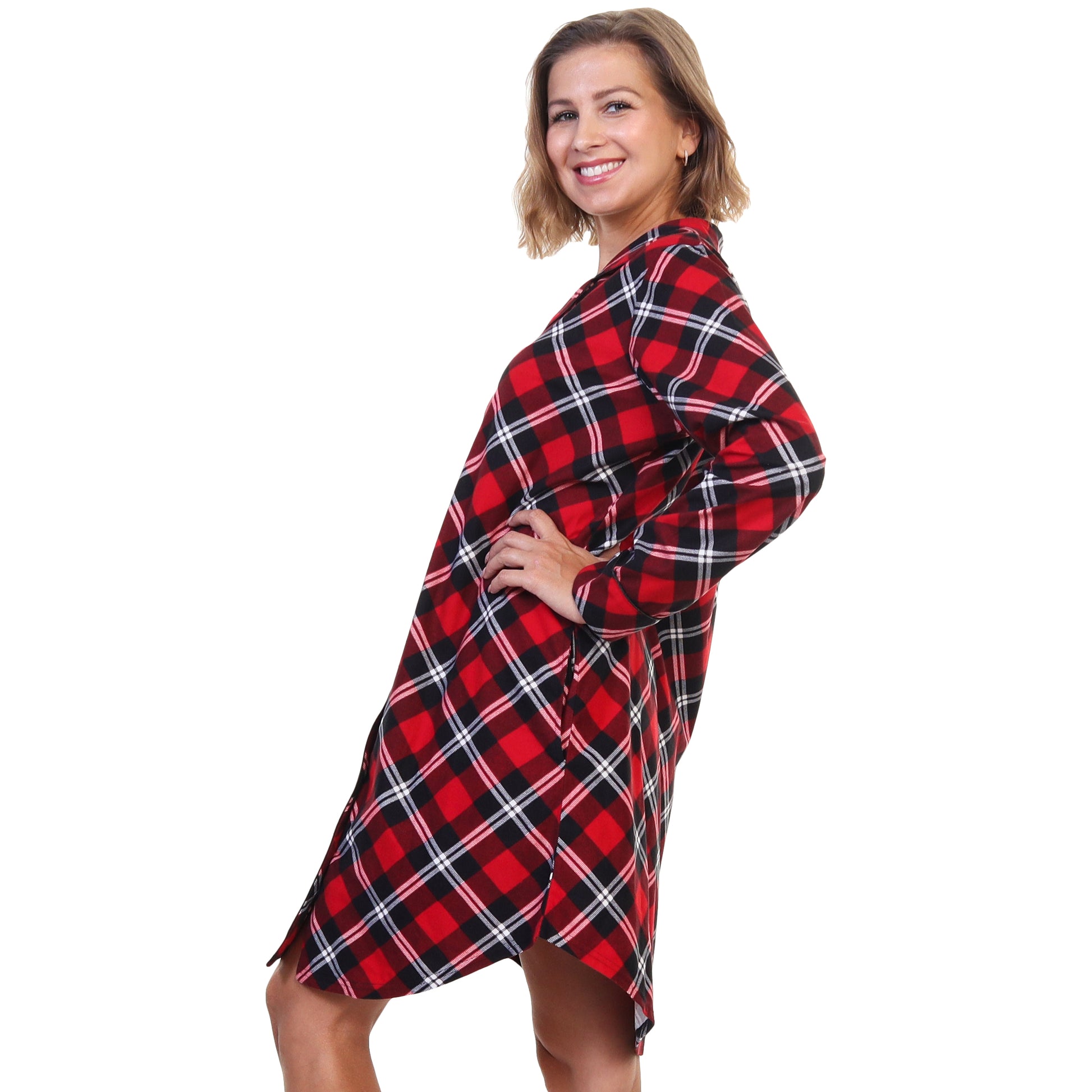 Women's Flannel Button Down Sleep Shirt Dress Pajama (1-Pack)